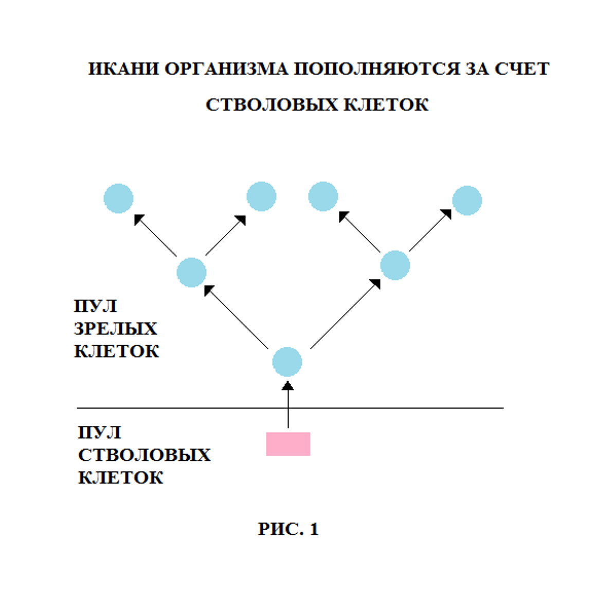 Стволовые клетки могут делиться бесконечно. Они то и подбрасывают периодически новые зрелые клетки в ткани (Рис.1).