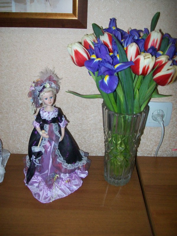 1. Кукла какого роста? 2. Сама кроила или выкройки где-то брала? Платья понравились, красное больше, т.к. выполнено более аккуратно. Удачно сочетание тканей, кружев, тесьмы. У меня подруга для большой куклы покупала одёжку в секондах. Думаю, что там можно и материал для одёжек найти - купил на большую, а сделал потом из этого на маленькую. :good::give_rose: |