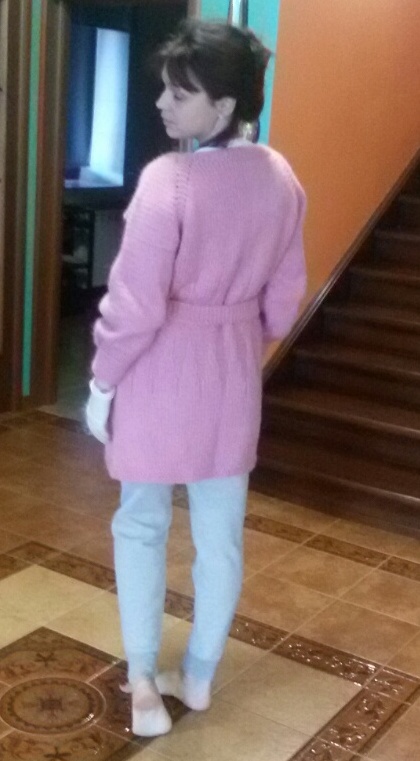 Хвастаюсь. К дню рождения племяшки связала в подарок ей кардиган. Пряжу взяла очень толстую. Перевязывала 2 раза. Решила, что толстую пряжу больше брать не буду, хотя вязать быстро, но вещь получается грубоватая...
