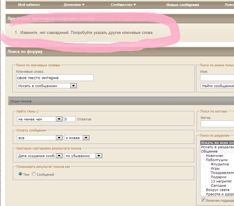 Не научусь я никогда поиском пользоваться. Ввожу в него запрос "своё место интернет", а он мне на это выдаёт только 2 темы: