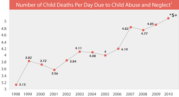 Известная американская правозащитная организация «Помоги детям» (Childhelp) обнародовала статистические данные, согласно которым в США ежегодно регистрируют 3,3 млн сообщений о насилии в отношении почти 6 млн детей, каждый день в стране от насилия погибает в среднем 5 детей (около 2 тыс. детей в год). По показателю насильственной смерти детей США установили «рекорд» среди развитых стран, отмечает Childhelp.