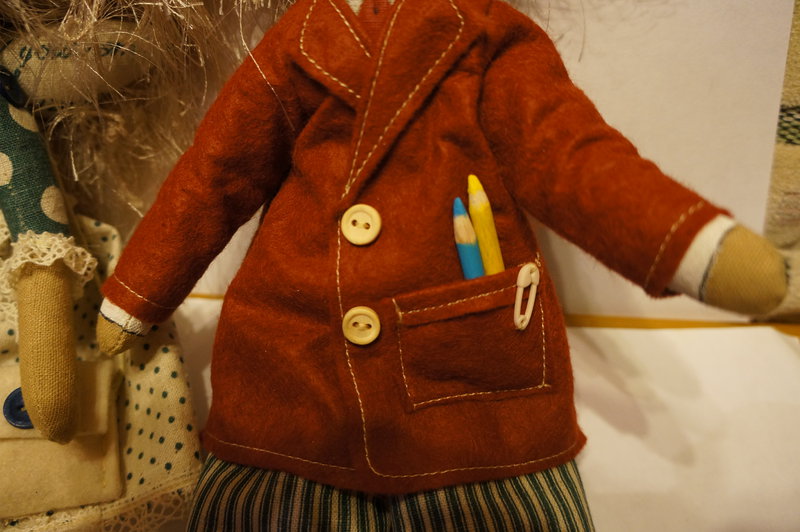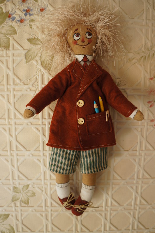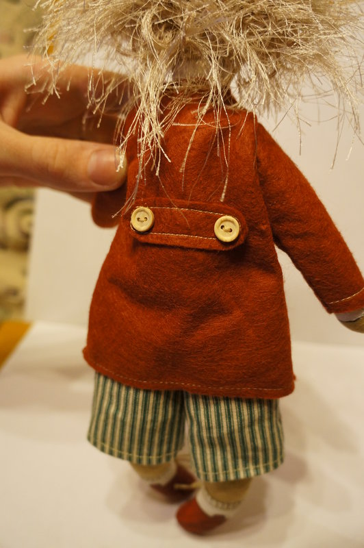 Есть и мужик. Вернее мужичок. Я его себе оставила. С ним хорошо кино смотреть. Он так удобненько под голову укладывается. Надо фоту найти. О, есть. Он домашний, поэтому боты я ему не стала делать. Носки только.
