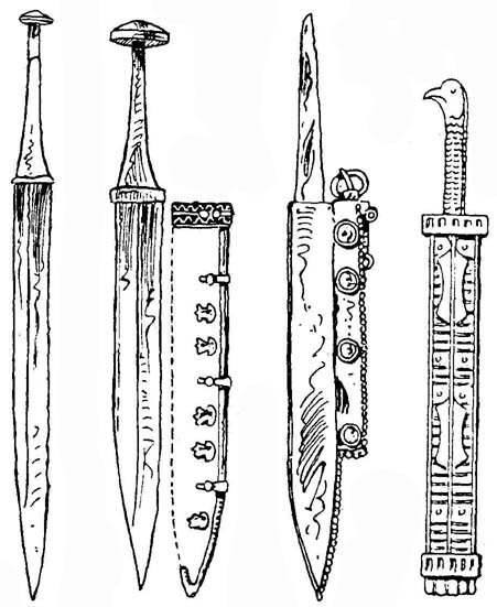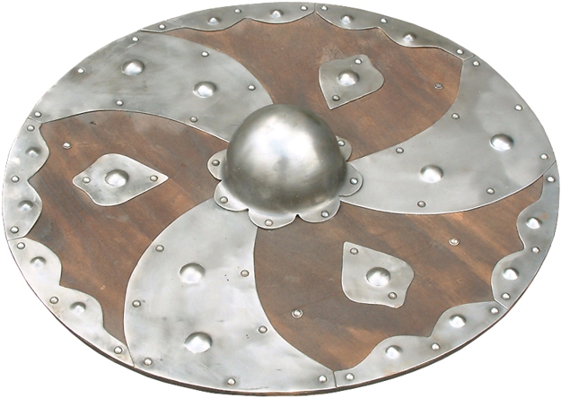 Щиты изготавливались из деревянных плоских дощечек и имели круглую форму. Диаметр щита варьировался от 80 до 100 см, а толщина, по-видимому, редко превышала 6-7 мм. В некоторых случаях щит мог покрываться кожей и (или) краской. В центре деревянного поля щита пропиливалось отверстие круглой или полукруглой (подквадратной) формы. С внешней стороны это отверстие закрывалось металлическим, реже деревян¬ным (каповым) умбоном, который крепился на гвоздях, загибавшихся с внутренней стороны. С внутренней стороны щита поперек досок крепилась деревянная рукоять, иногда с кольцами для подвешивания плечевого ремня. Кольца для ремня могли монтироваться и непосредственно на поле щита. Крепление рукояти осуществлялось при помощи металлических заклепок (гвоздей), но в большинстве случаев - с помощью деревянных гвоздей - нагелей. На краю щита при помощи металлических оковок закреплялась полоска кожи, по всей видимости, дополнительно пришивавшаяся. Подобная полоска кожи могла закрепляться (пришиваться) и без металлических заклепок.