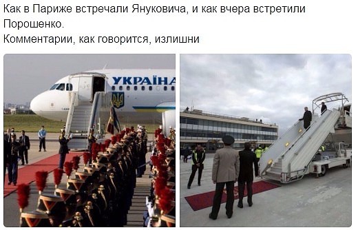Я про то, что очень может быть, что на двух фото сравниваются два визита разной важности. Ну мало ли по какому поводу Янукович в тот раз приехал? Если сейчас прибыло с пару десятков президентов, то не будешь же каждого фанфарами встречать? Или как?:scratch_one-s_head: |