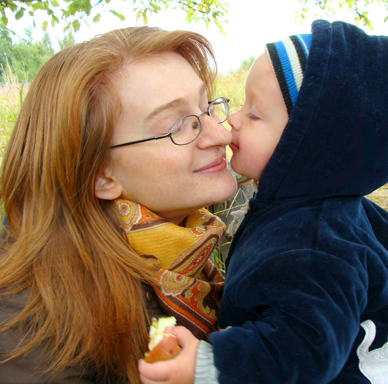 Рыжих на самом деле очень много. Просто степень проявления "рыжести" очень разная (как это, экспрессивность?). И полным-полно семей, где рыжий родитель только один, да и то на грани уловимого, только по ресницам-бровям-коже чуть заметно, а младенец - чистое солнышко. :) Видела семью, где мама бледно-рыжая (в оригинале), папа чернявый то ли узбек, то ли не знаю кто из тех краёв, а все трое детей вполне себе рыжики, только оттенки разные. Соседка моя рыжая, муж типа белоснежка - светлокожий брюнет с серыми глазами. Доча - рыжее мамы.)) (красится в кардинальный чёрный цвет :D) |