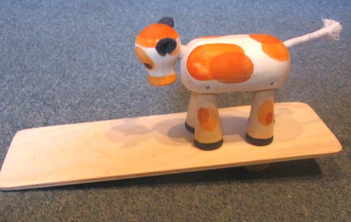 Другой вариант - ниточка с грузиком, который свисает со стола и фигурка враскачку идет к краю. Такие были бычки, пингвинчики и утята...