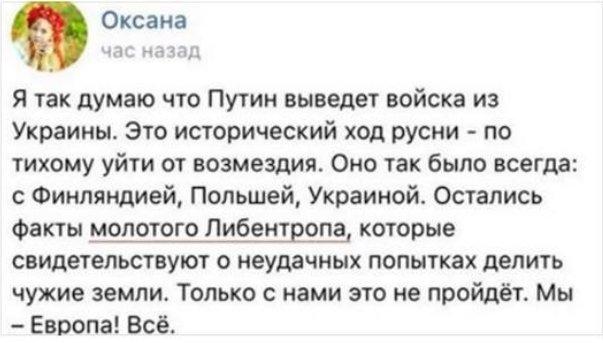 Ты даже не допускаешь вариант, что к этому украинцы могут хотя бы относиться с пониманием?