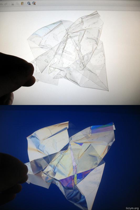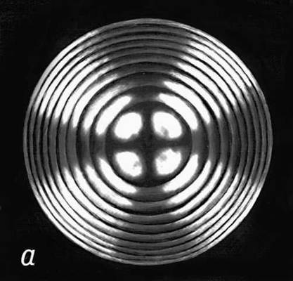 А потом я прочитал, что так как света неба поляризован, то некоторые люди (у которых стекловидное тело глаза поляризовано) могут видеть крест на небе через одно стёклышко. Ну, вот вроде такого (лучше я не нашёл)картинка на следующей странице... А есть люди, которые могут видеть и БЕЗ стёклышек! Я всех входящих в лабораторию проверял на эту способность без стекол, с одним стёклышком. Увы.