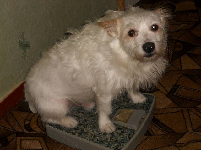 При его росте и породе  у него должно быть не больше 8-ми кг. А у него сейчас вес - 11 !!!