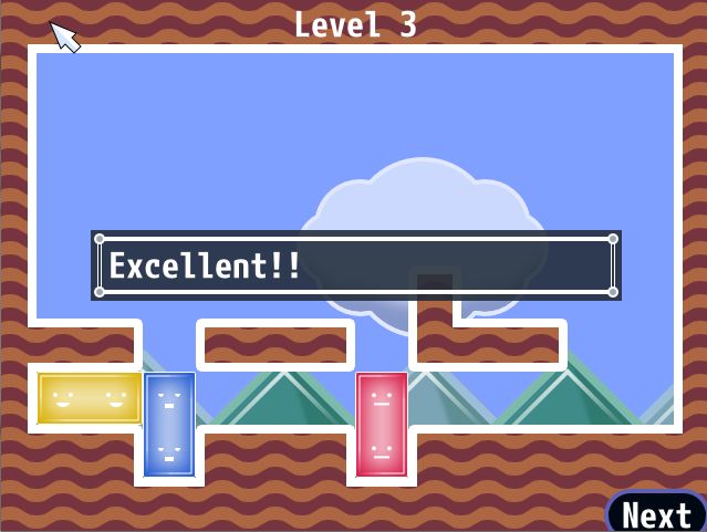 Как я этого добился. Кидаешь левый синий в дырку, на него желтый. Двигаешь направо вставив его между красными, а синий до конца направо. Перед ним роняешь второй желтый и все три до упора налево. Правда у меня цвета другие, но, думаю, это не принципиально.