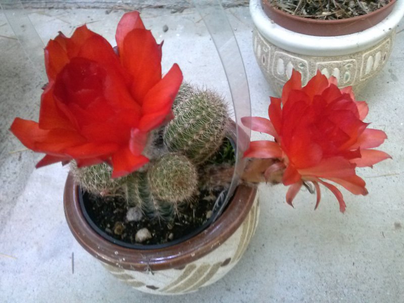 Мои кактусы, тоже многострадальные  тоже переехали. Купила вазон широкий, но не глубокий, три штуки вместе поместились. И конечно, не смогла мимо еще одного кактуса пройти