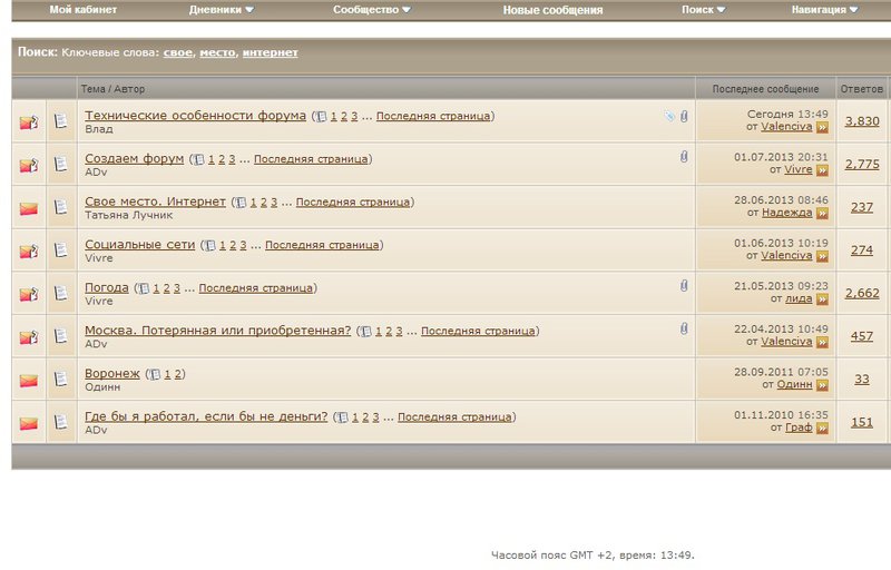 Не научусь я никогда поиском пользоваться. Ввожу в него запрос "своё место интернет", а он мне на это выдаёт только 2 темы: