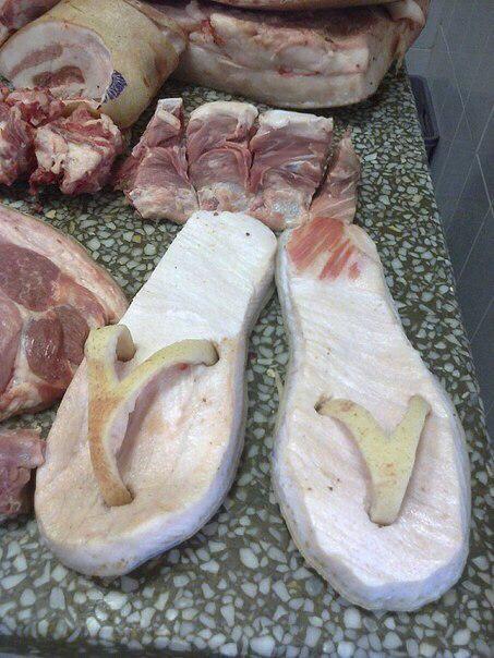 -Сало с мясными прожилками называют по русски грудинка» или по английски «бекон».