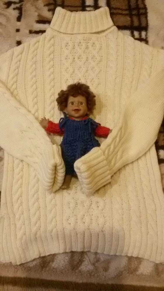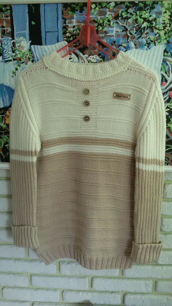кстати процесс вязания не так уж и затратен по времени, особенно если нитки и спицы не тонкие. Свитер внуку я связала за три дня, причем не сидя над ним постоянно. Себе вязала по вечерам. И даже раз перевязывала наполовину. Где то недели две заняло. А еще один для себя кофтень чуть ли не за одни выходные сваяла. Но там все просто, без узоров два полотна и рукава. Сиди, сериал смотри и спицами брякай. Не считать, ни смотреть не надо, руки сами делают.