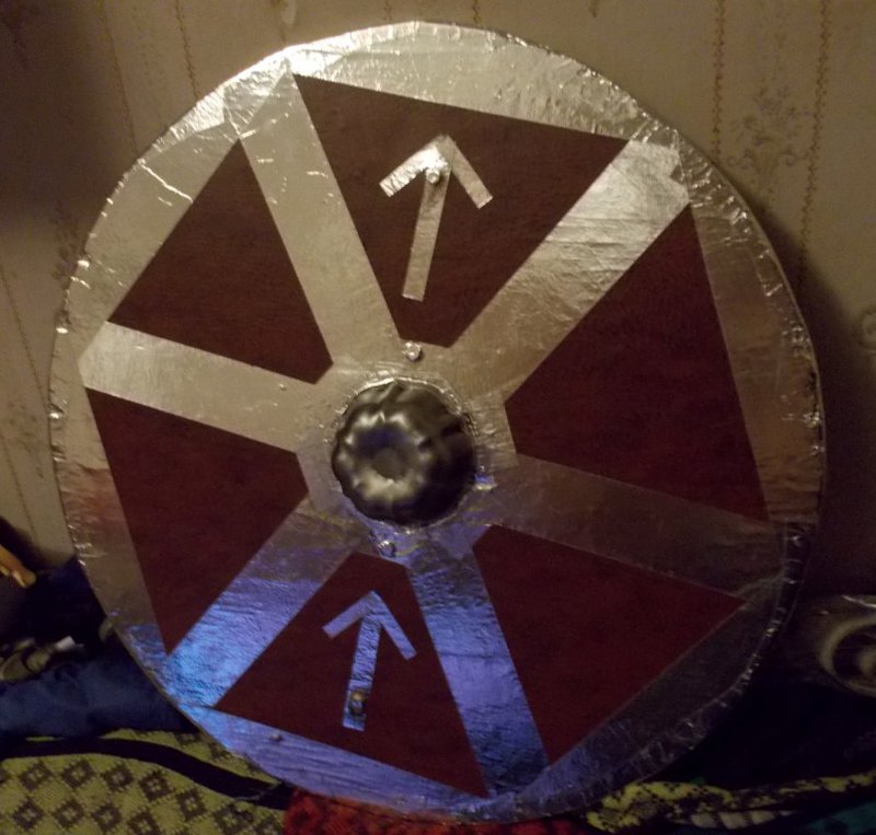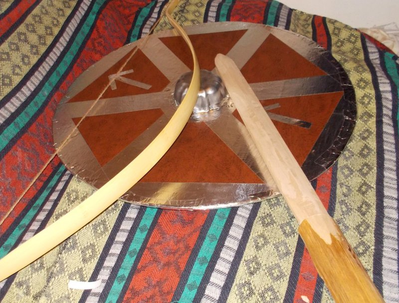 А мне всё нравится. И меч, и щит, и лук.  В детство впадать иногда полезно )))) А с внутренний стороны щит как организован, чтобы держать можно было?