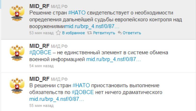 Вот Комментарий Департамента информации и печати МИД России в связи с решением ряда стран НАТО по ДОВСЕ