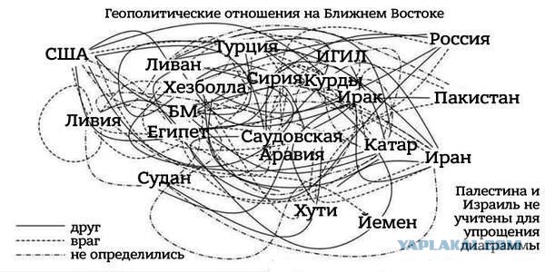Помните тут была шуточная диаграмма отношений на Ближнем востоке? Так вот - там все гораздо сложнее...