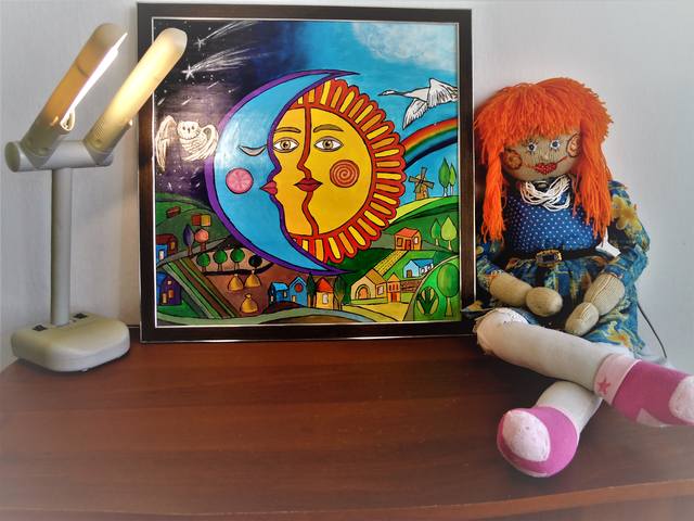 я ничего сама не переводила. Продаются наборы для рисования. Называются Живопись по номерам. в набор входит холст на раме, на холсте тоооооненькими линиями обозначены линии куда какую краску ложить и номер краски. И баночки с красками. На каждой баночке номер стоит. Например желтая 9, красная 11 и другие. И кисточки прилагаются. Наборы есть разные по сложности. Есть, где всего 15 цветов используется, а есть где 40. И можно рисовать точно как на холсте обозначено, а можно что-то свое придумывать. Другие цвета использовать, или еще как. Очень увлекательное занятие. Нервы успокаивает.