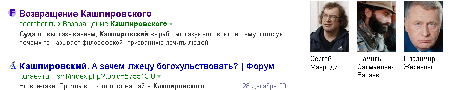 Занятную компанию выдал Яндекс по запросу о Кашпировском: