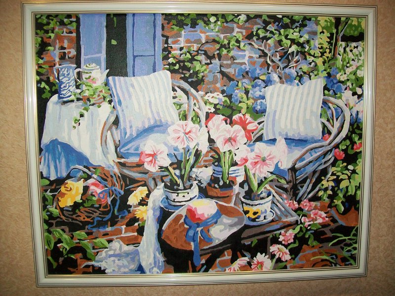 ой, ну это не совсем картины... Я бездарь вообще в этом плане, а это скорее раскраски для взрослых тётенек... Есть сейчас такая мулька - роспись по номерам... Вроде ерунда, но увлекает необыкновенно, смотрится неплохо... Вот у меня что получилось