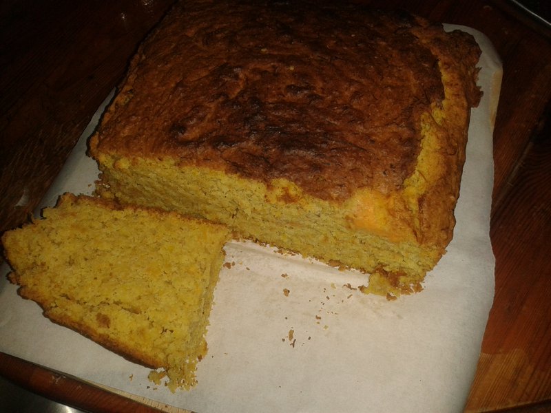 Варёная тыква (пюре), 4 яйца, около 200 гр масла, сахар, корица, разрыхлитель, корица, манки грамм 200, мука, чтобы густое тесто получилось (примерно как недомешанное песочное, не знаю с чем ещё сравнить). И всё, кажется. Печь так, чтобы пропёкся. Но это от духовки зависит.