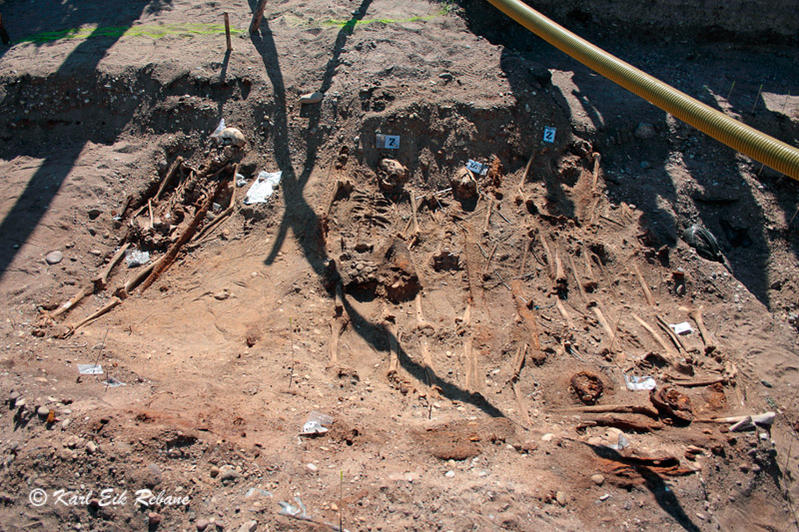 прокладывая электрический кабель, обнаружили человеческие останки, подумали: братская могила Второй мировой. Но экспертиза показала, захоронение куда более древнее. Фрагменты ладьи, лежащей как бы по направлению млечного пути, развеяли все сомнения: так погребали предшественников викингов.