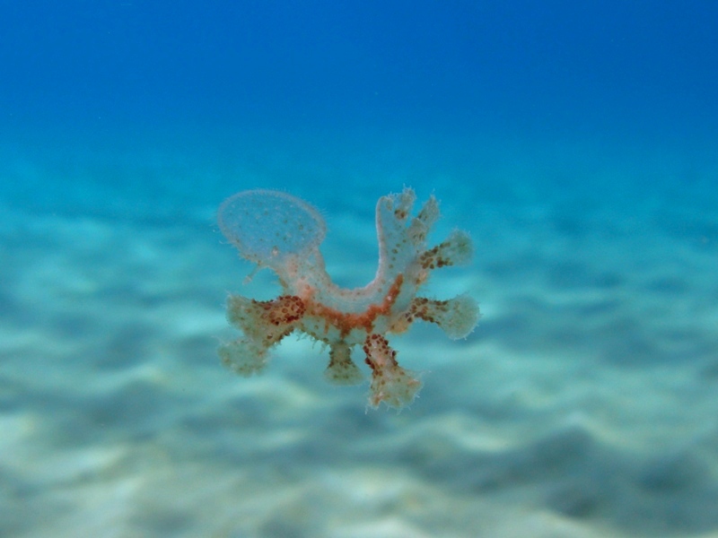 Melibe viridis относится к морских слизням , голожаберникам , беспанцирным морским брюхоногим моллюскам.