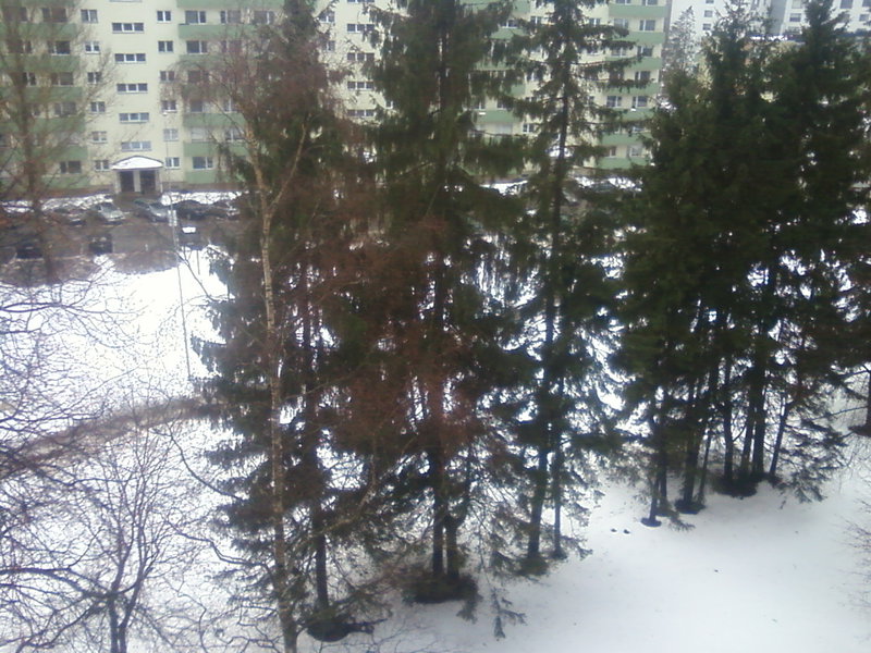 Вот заснял ёлки из окна только что.